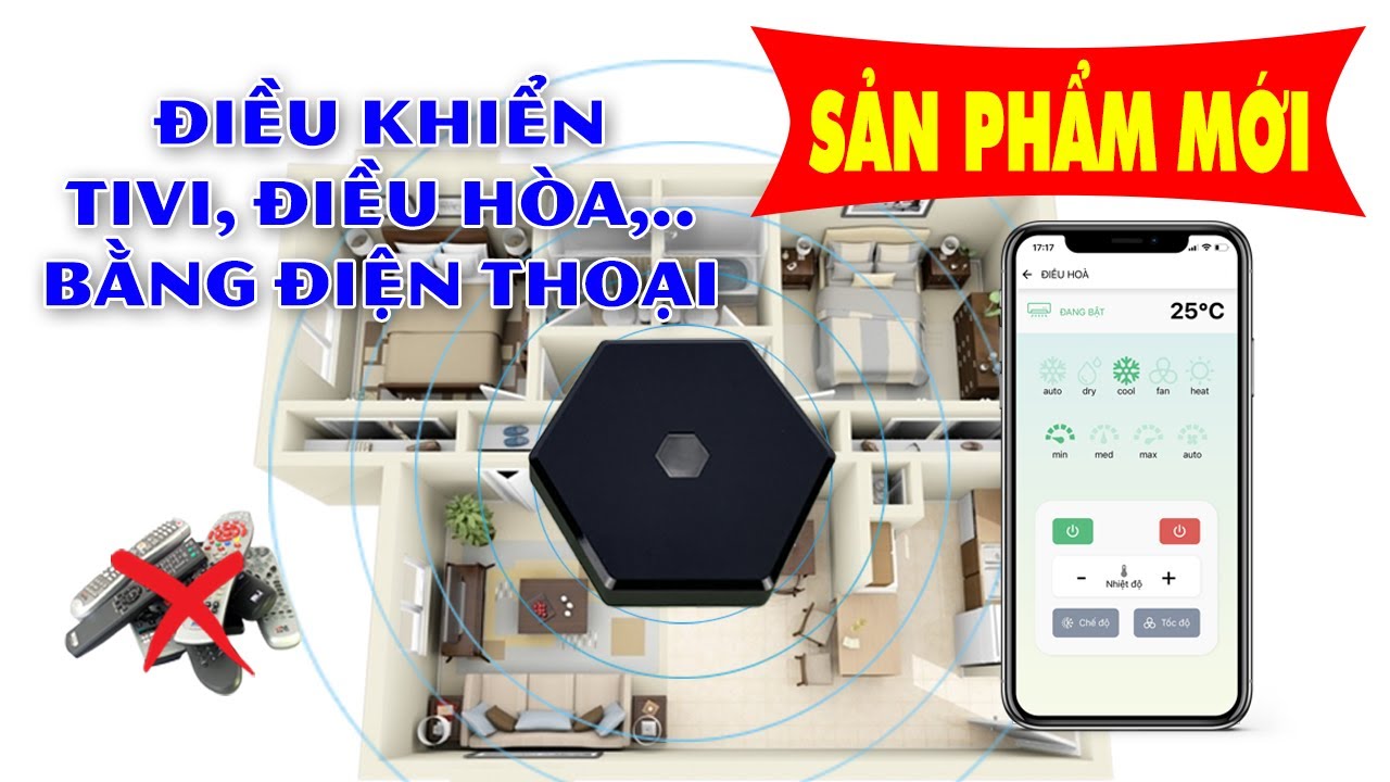 1. Điều khiển từ xa bằng điện thoại với Bộ điều khiển hồng ngoại wifi Hunonic IR Smart.